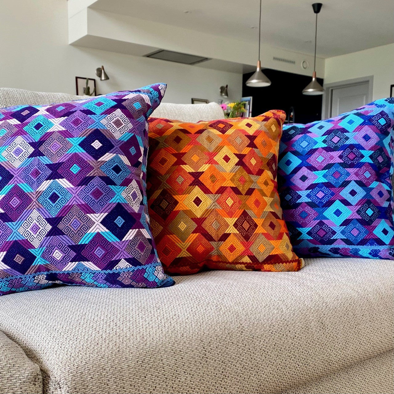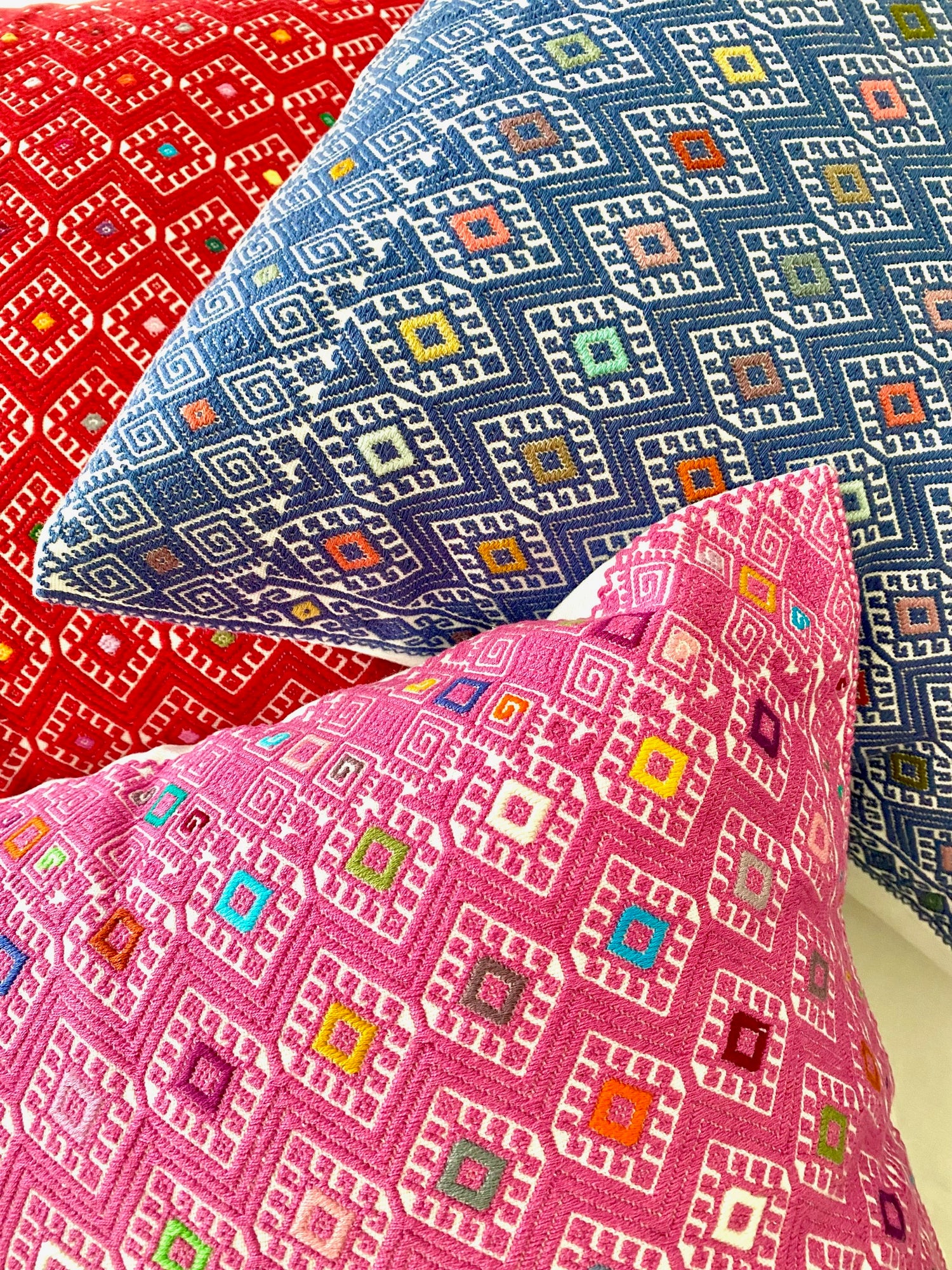 Introducing Maria's Colorful Fiesta Chiapas Cushions, a vibrant collection of handcrafted treasures...