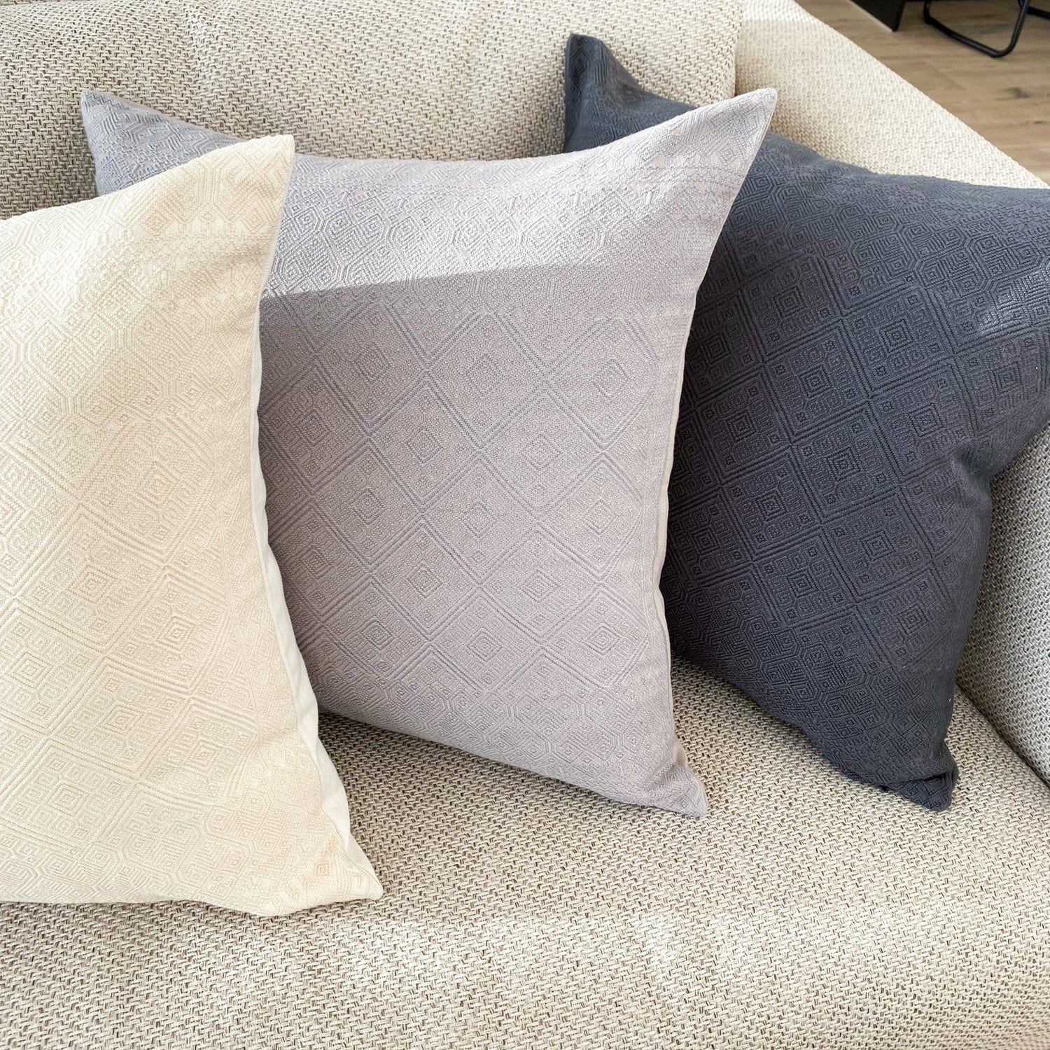 Cecy's Shimmering Treasures: A stunning array of Metallic Thread diamond brocade Chiapas cushions....