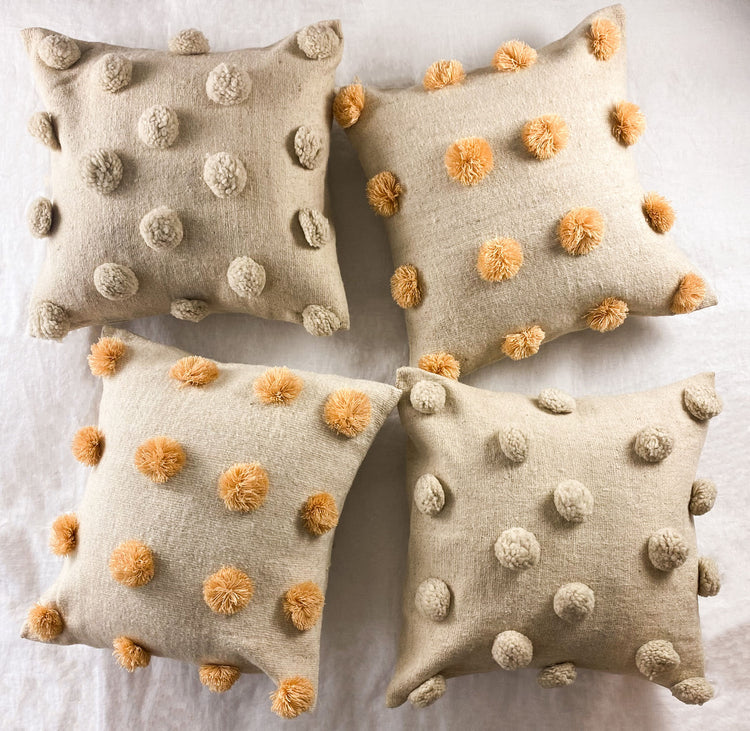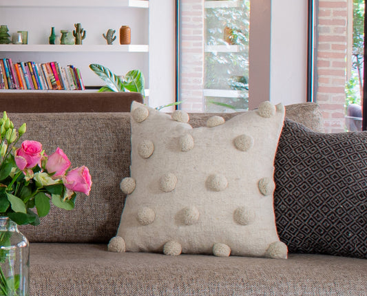 Anna Wool Cushion Pom Pom Beige