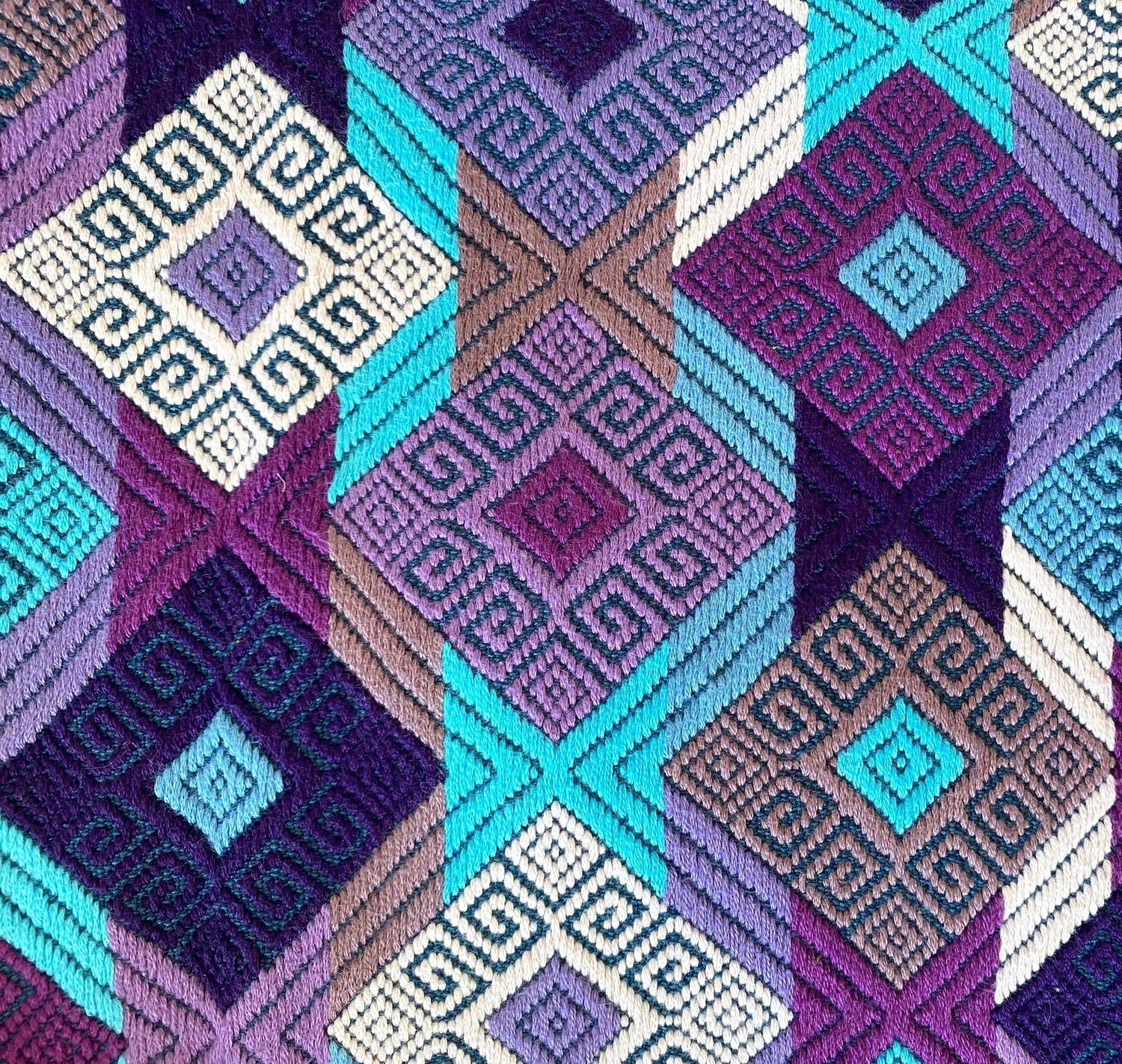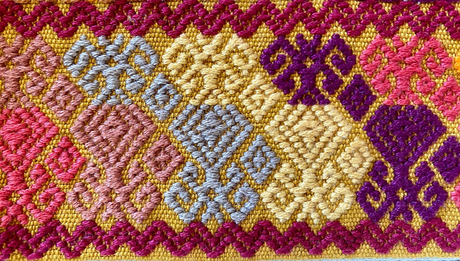 The symbols used in Chiapas embroidery are deeply rooted in the region's indigenous culture and traditions, and each has a specific meaning. For example the "geometric shapes": diamonds represent the earth, and triangles signify the sky. The diamond shape often appears as a central motif in embroidery and symbolizes the sacred mountain where the gods reside.